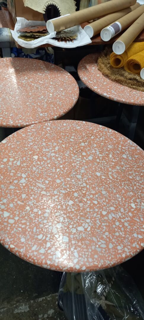 2 Guéridons piètement bistrot plateau en terrazzo