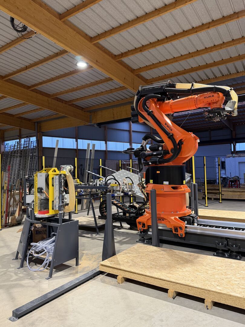 - Chaîne de production avec robot KUKA, Table de relevage, Transbordeurs PEGASE, Cadreuse RHEA, Tables de transfert...